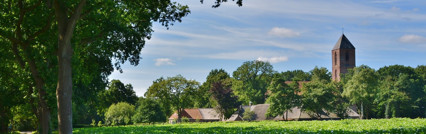 Het is rustig, dat sowieso. Wel razen een kilometer verderop auto’s over de provinciale weg, maar geen hoogbouw ontsiert de horizon. Maar één plaats valt me op: daar komen twee bouwwerken boven de bomen uit. Een kerktoren en een zendmast. Symbolisch! Een toren van vroeger tijd, toen het nog vooral belangrijk was om in de hemel te kunnen komen. En een toren van deze tijd, nu het vooral belangrijk is om op het internet te kunnen komen. Welke wint het? Vanaf hier lijken de torens even hoog, maar ik weet dat schijn bedriegt: de zendmast staat een stukje naar achteren – die torent dus bóven zijn eeuwenoude concurrent uit. De wereld heeft het gewonnen van de hemel. Niet alleen hier (waar nauwelijks nog kerkgangers zijn) maar op zo veel plaatsen.
